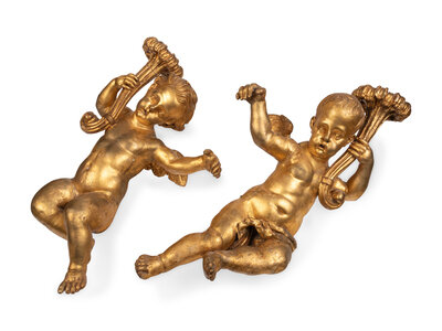 A Pair of Continental Giltwood Cherubs