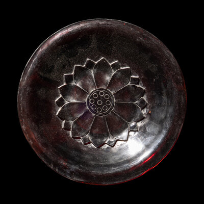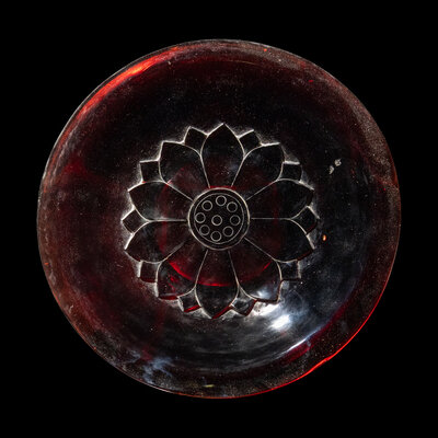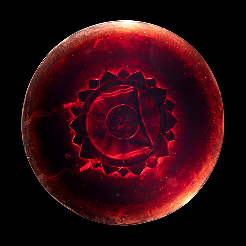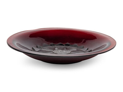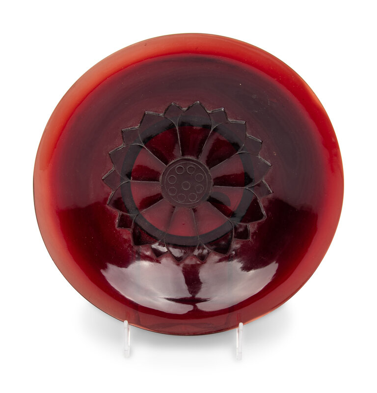 A Chinese Carved Ruby Red 'Lotus' Peking Glass Plate, Late 19th-Early 20th Century