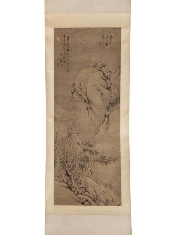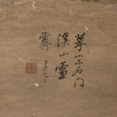 款識:摹宋石門溪山雪霽。道芬。道光庚戌(1850)長至後五日仿古四家。育亭通守大人清賞。吳下葉道芬。