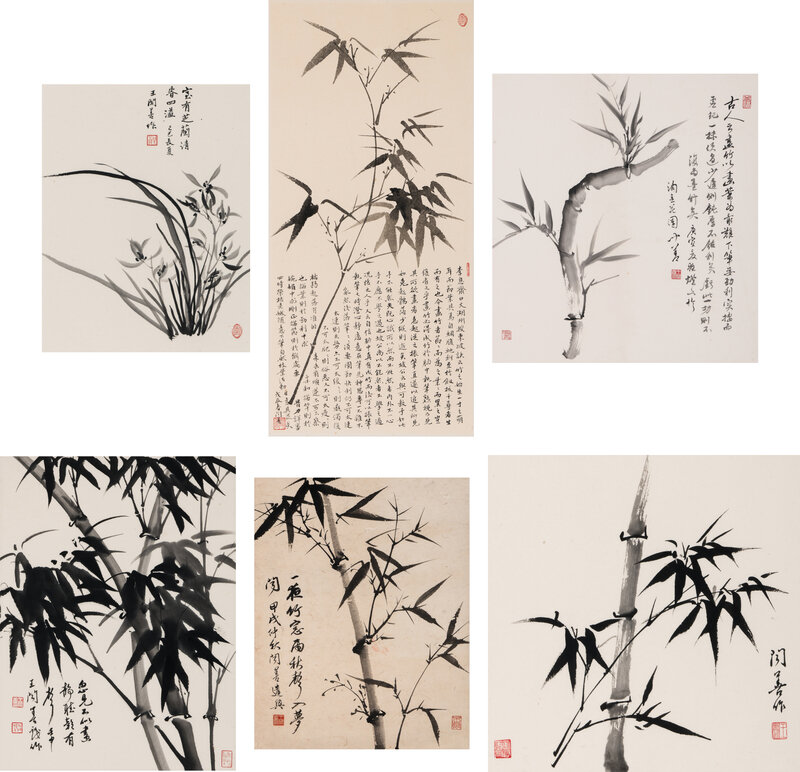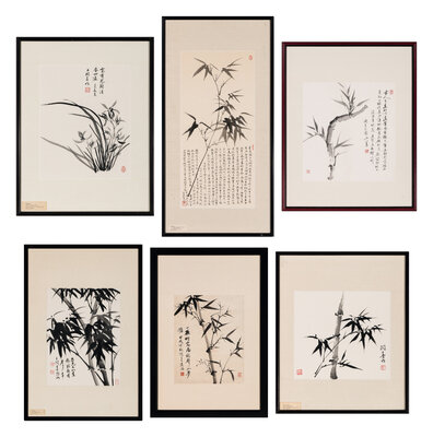Six Framed Works Depicting Bamboos