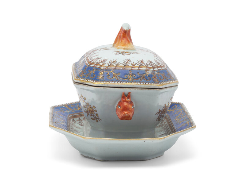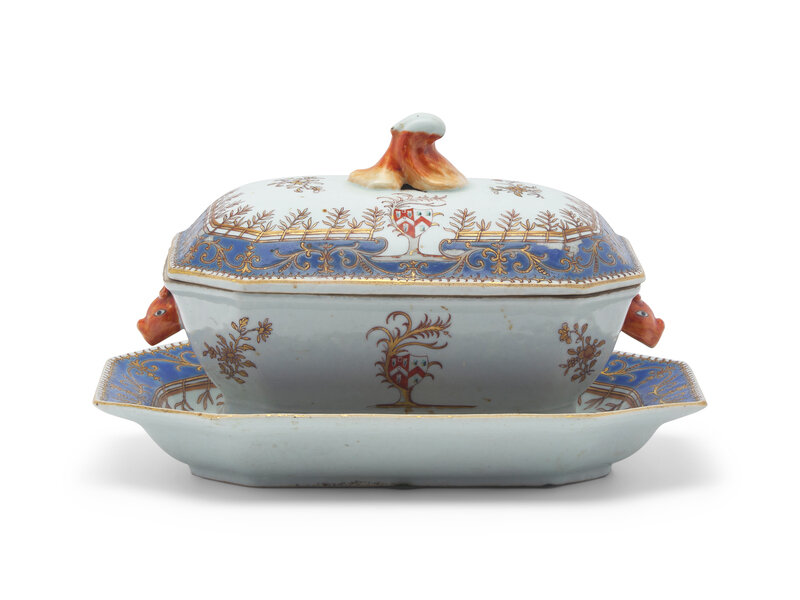 A Chinese Export Tureen, Cover and Stand, Late 18th to 19th Century