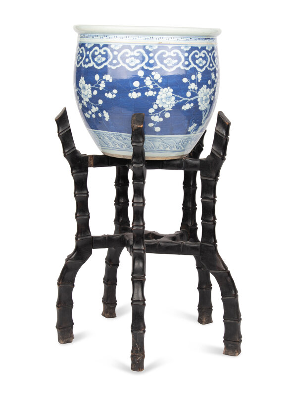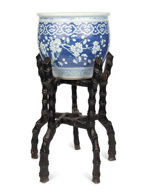 A Large Chinese Blue and White Porcelain Fishbowl with Stand