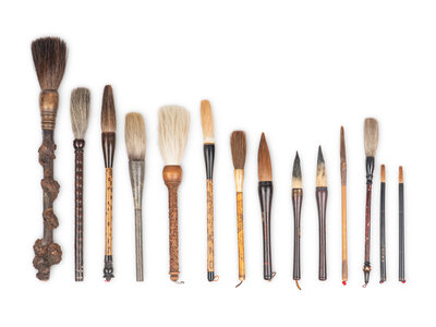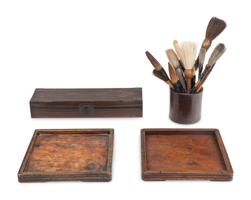 Comprising a brushpot, a document box, two square trays, and a group of brushed.