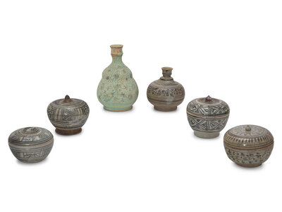 Four Thai Iron Brown-Decorated Stoneware Covered Boxes