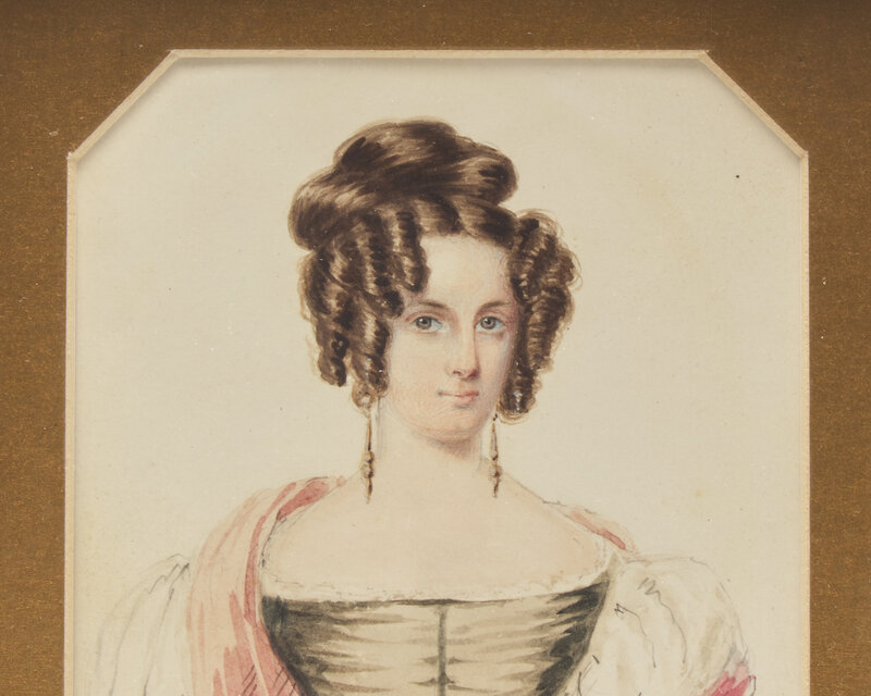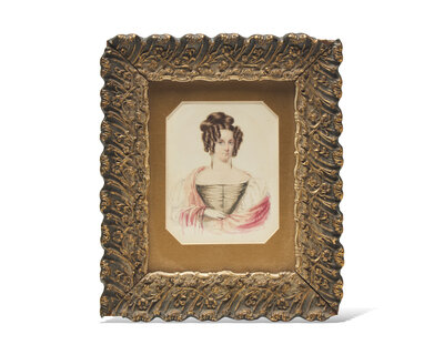 English School 19th Century, A Portrait Miniature of a Young Woman With Pink Shawl