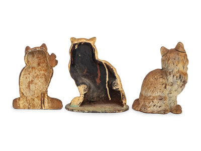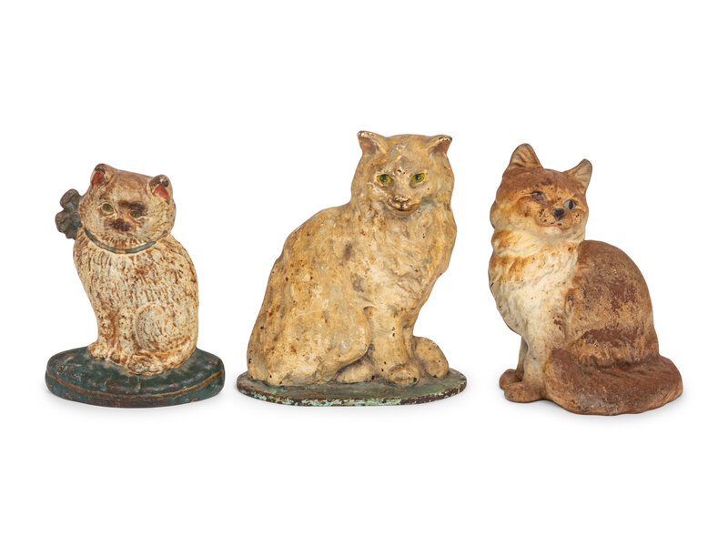 A Group of Three Painted-Iron Cat Form Door Stops