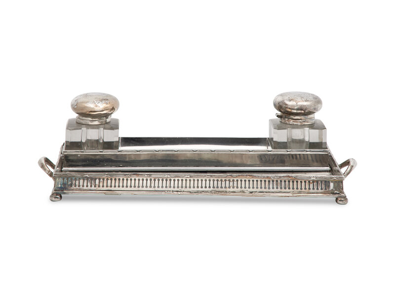 Height of inkstand 4 3/4 x width 17 1/2 x depth 8 1/2 inches.