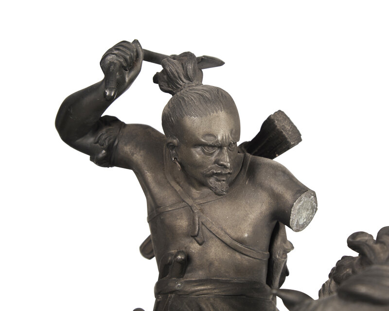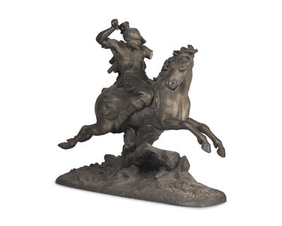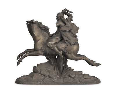 A Patinated White Metal Figure of a Native American Hunter on Horseback
