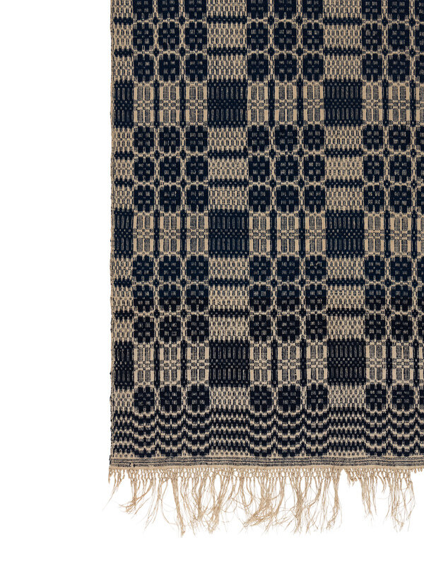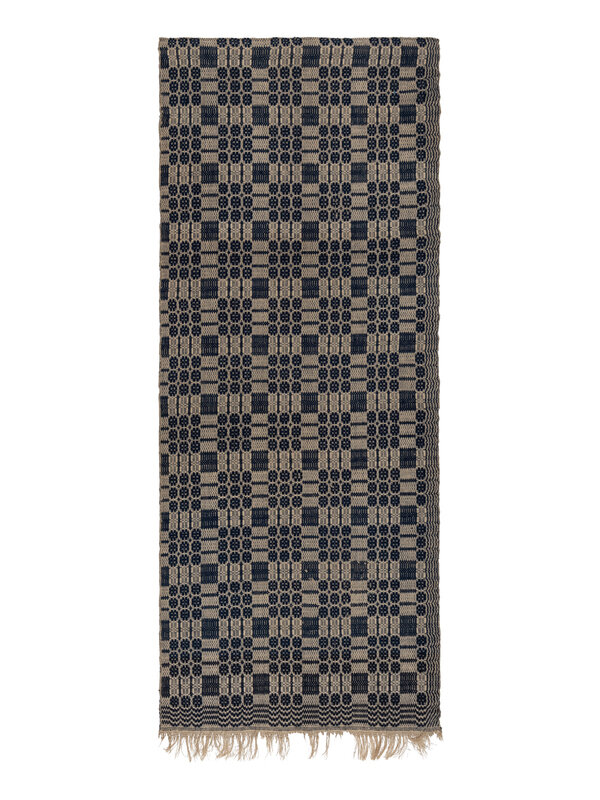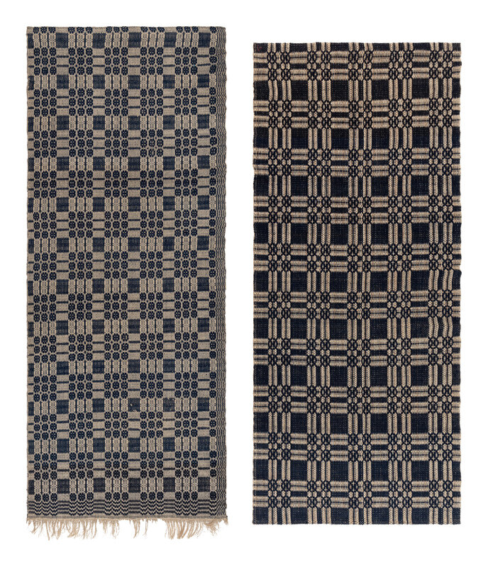 Example 1: blue wool and natural linen. Circa 1820-1830, North Carolina. 88 1/2 × 36 3/4 inches.