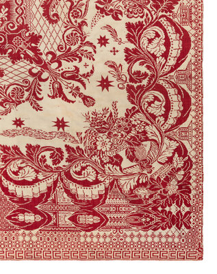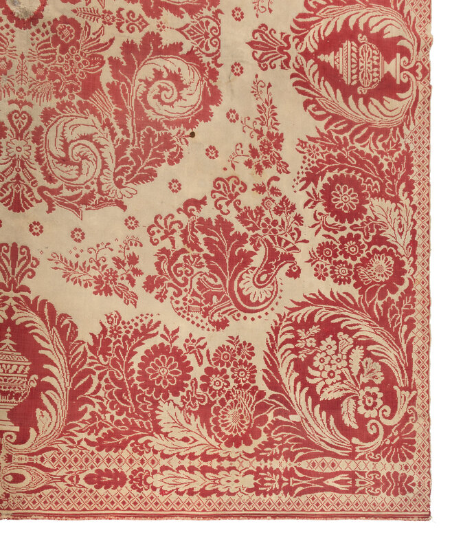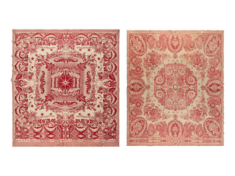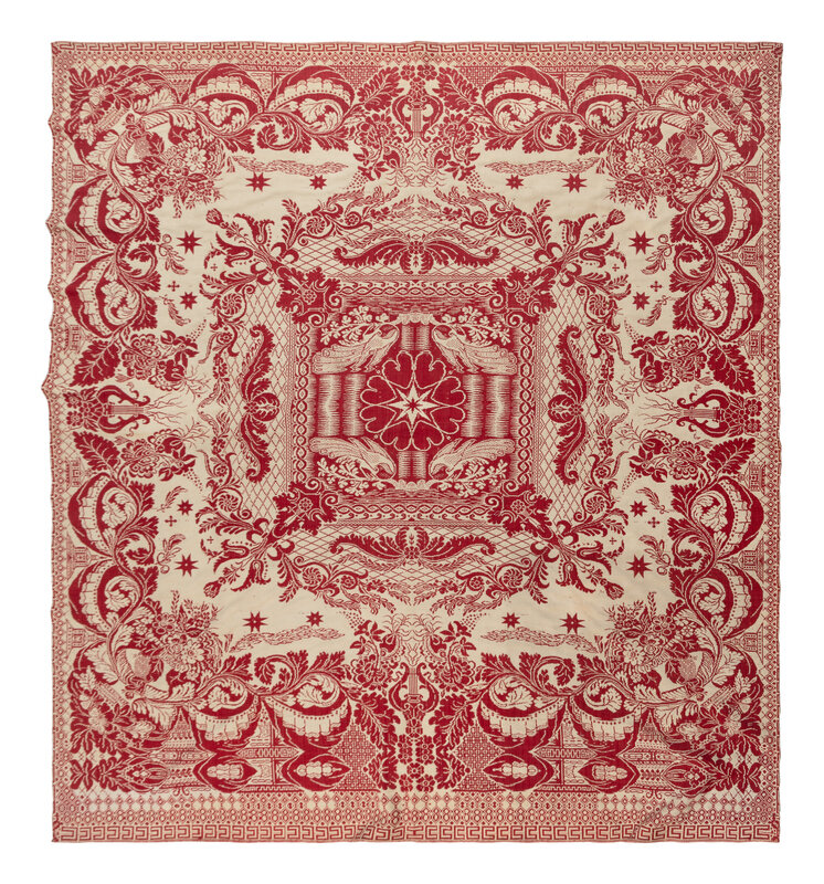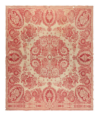 Example 1: Natural cotton and red wool. Circa 1850-1855, New York. 85 1/4 × 89 1/2 inches.