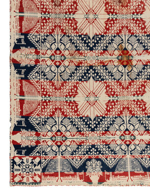 Example 2: natural cotton and blue and red wool. 86 1/8 × 74 1/8 inches.