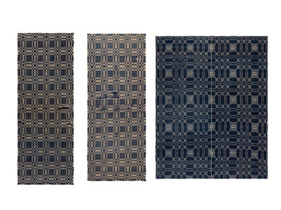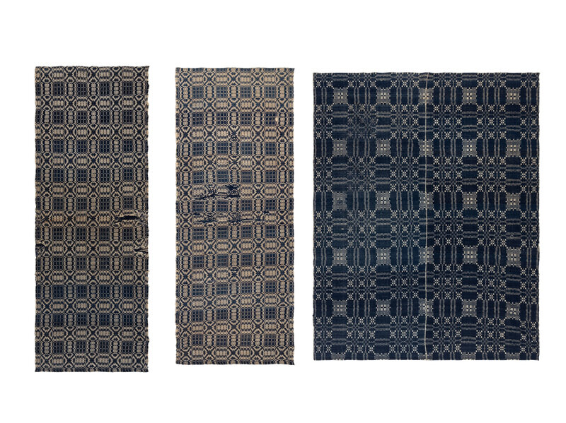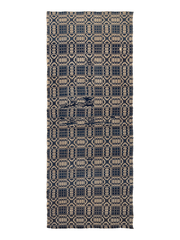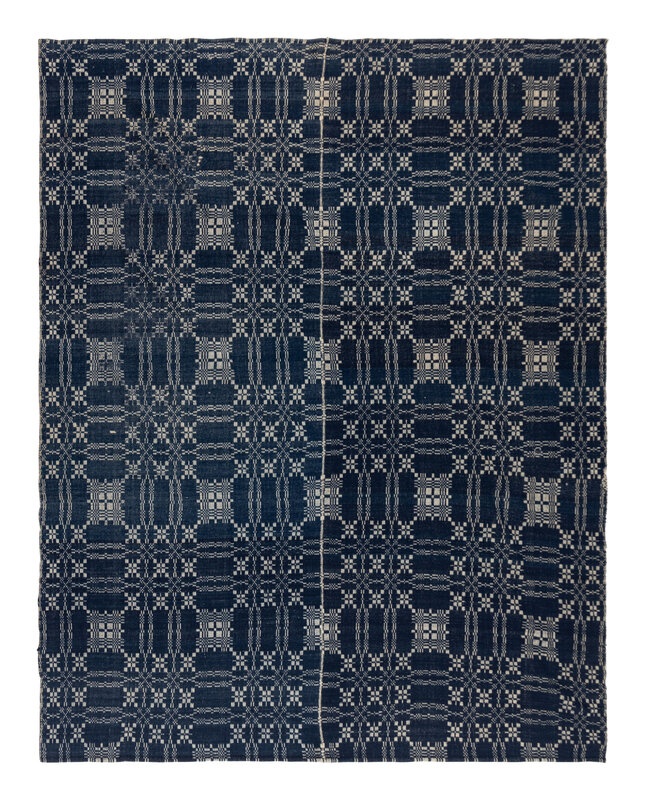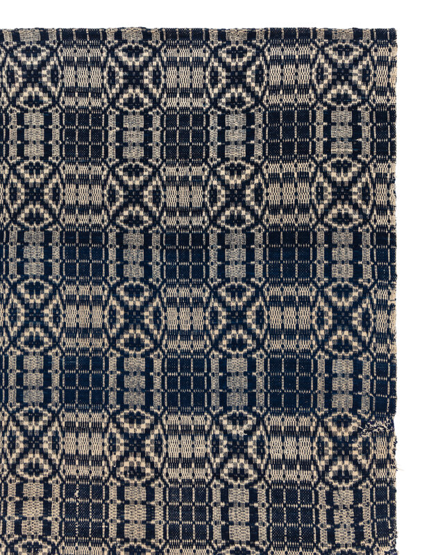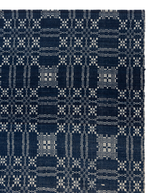 Example 3: natural cotton and blue wool. Circa 1825-1835. 88 × 45 inches.