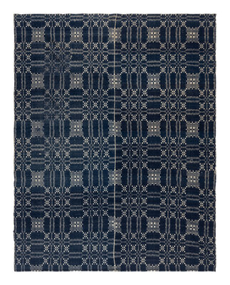 Example 1: natural cotton and blue wool. Circa 1820-1825, Burlington Vermont, Chittenden County. 87 7/8 × 72 1/8 inches.