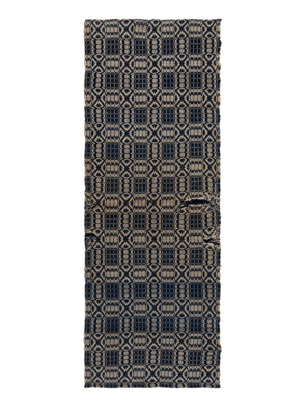 Example 2: natural cotton and blue wool. Circa 1825-1835. 94 1/2 × 34 1/2 inches.