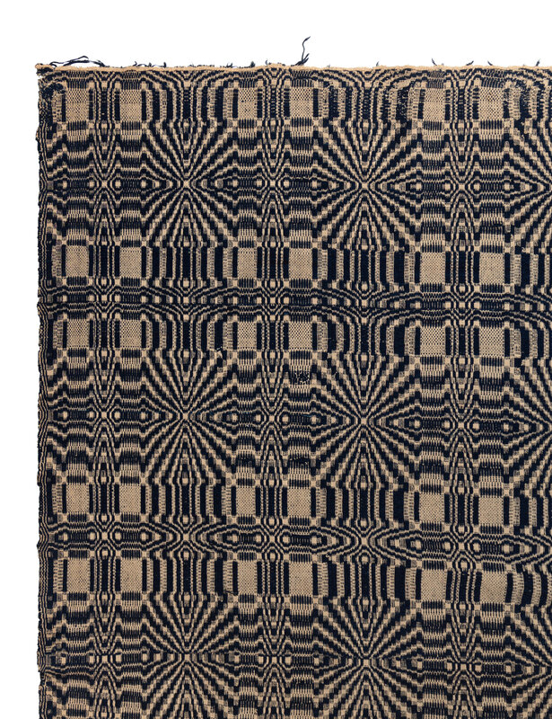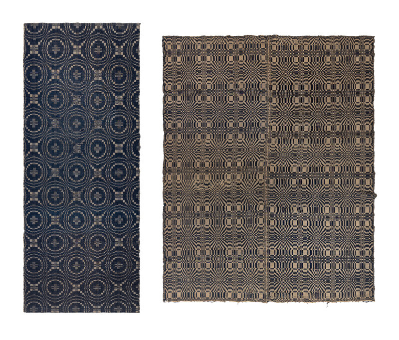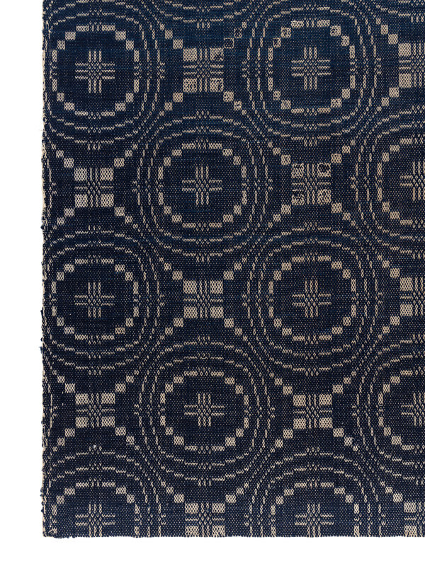 Example 1: natural cotton and blue wool. Circa 1820-1825. 94 × 38 1/4 inches.
