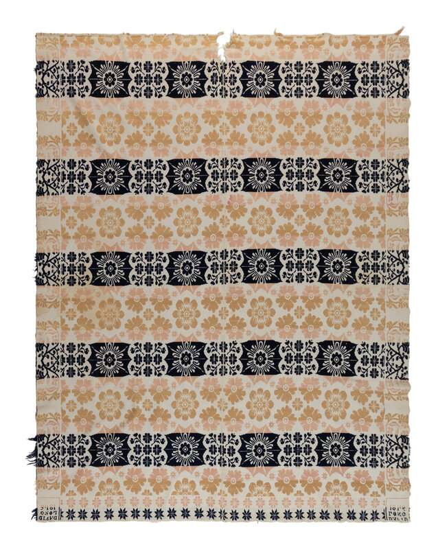 Example 2: natuaral cotton and blue, pink and yellow wool. Inscribed David Long 1846. Chambersburg, Franklin County Pennsylvania. 99 x 75 inches.