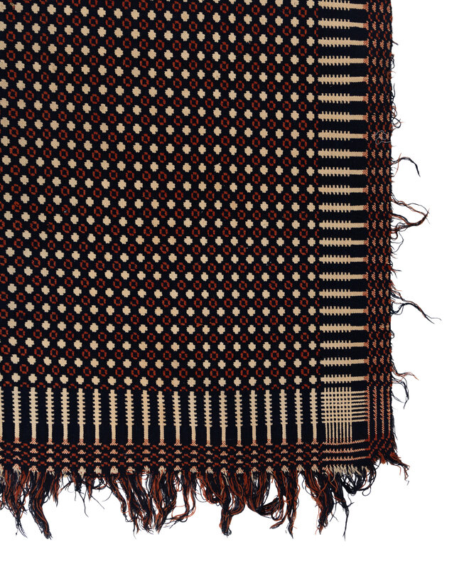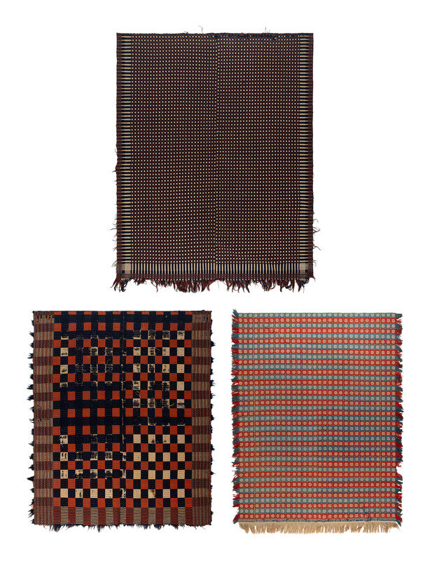 Example 3: a cotton and wool coverlet, two loom widths joined. 90 5/8 × 68 inches.