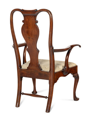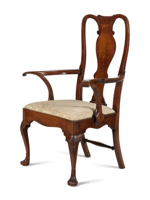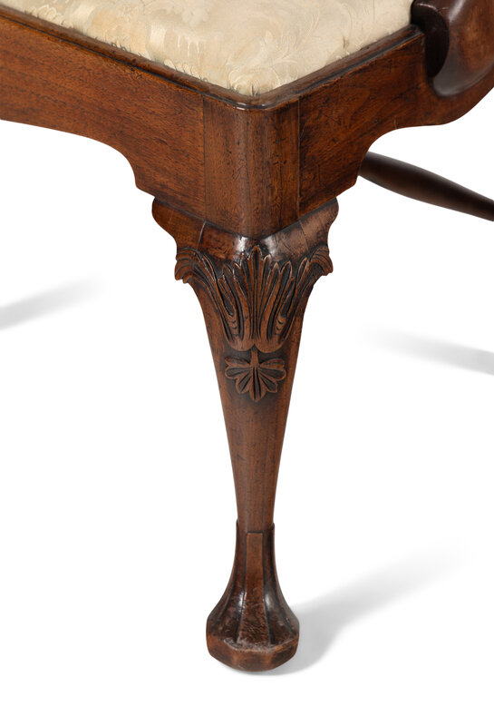 the slip seat upholstered in silk damask.