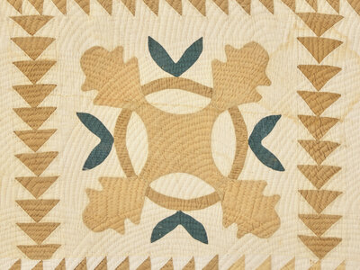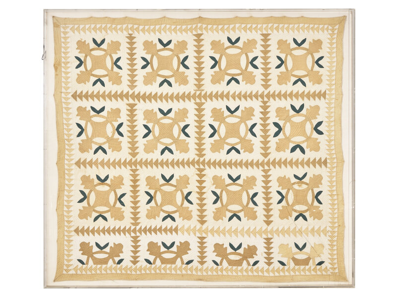 A Green and Tan Cotton Applique "Oak Leaf" Quilt