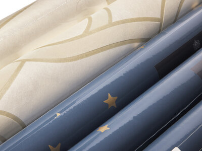 Three Rolls of 'Stars' Block Print Wallpaper in Metallic Silver on Midnight Ground By Cole & Son
