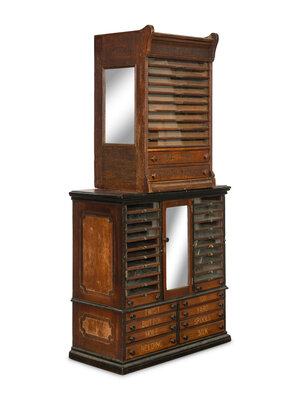 Smaller Cabinet, height 35 x width 21 1/2 x depth 18 inches.
