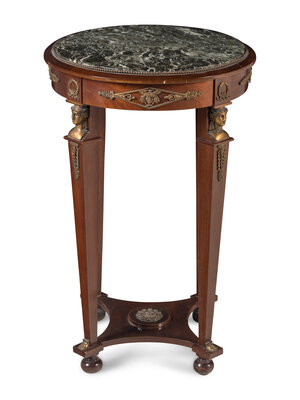 An Empire Style Gilt Bronze Mounted Mahogany Marble-Top Side Table