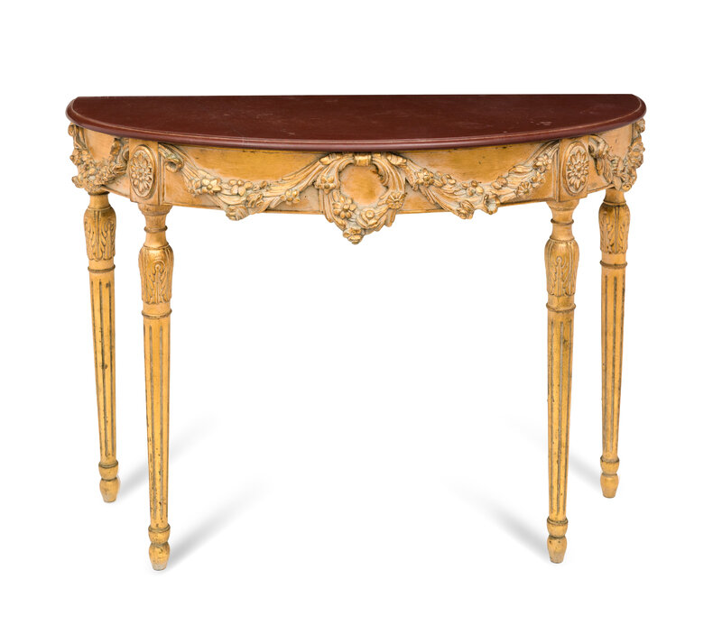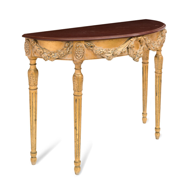 An Italian Giltwood Demilune Marble-Top Console Table