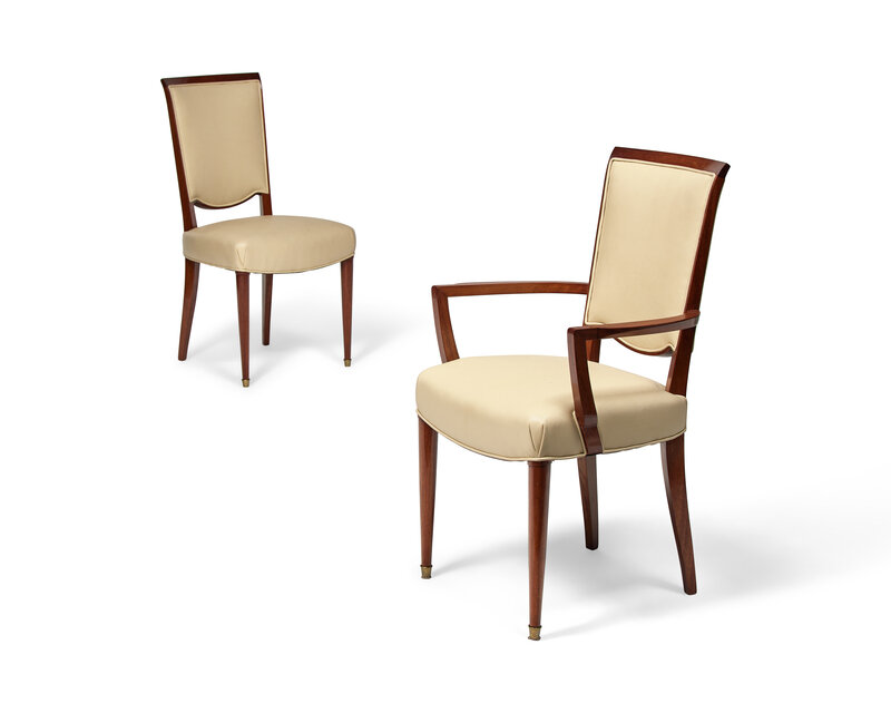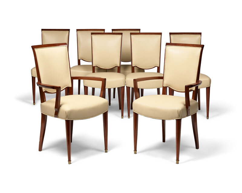 A Set of Eight Jules Leleu Mahogany Dining Chairs