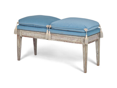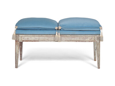 A Louis XVI Carved and Crème-Painted Beechwood Window Bench