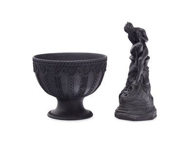 A pastille burner modeled as a nymph atop a rocky outcrop; impressed 'WEDGWOOD' and with indistinct signature 'H. W...', possibly for Henry Webber