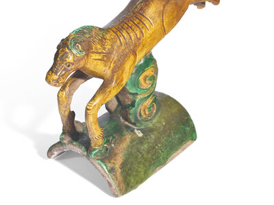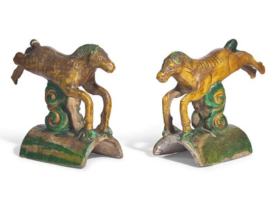 A Pair of Chinese Sancai Glazed Pottery 'Horse' Rooftiles