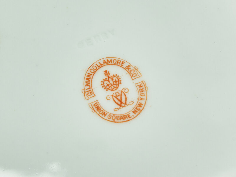 Retailed by Gilman Collamore & Co., iron-red stamps with Royal Crown Darby Cypher and retailer's marks, impressed 'Derby' to the underside; each piece with hand-painted scene of various fish in landscapes and signed 'H. Deakin'.