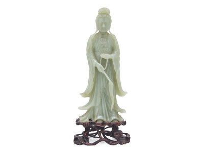 A Chinese Celadon Jade Figure of a Meiren