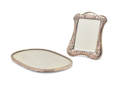 An English Art Deco Style Silver Dresser Mirror and Associated Silver Mirrored Plateau