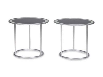 A Pair of Art Deco Style Silver-Painted and Mirrored Side Tables