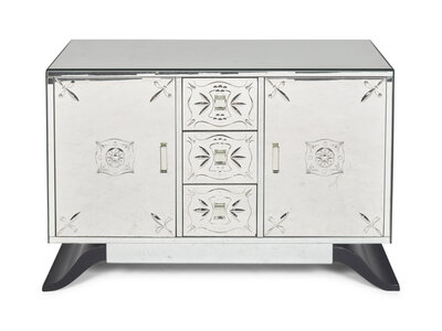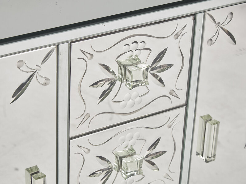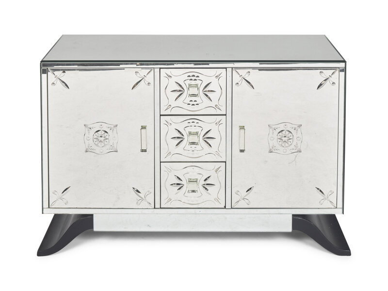 An Art Deco Etched Glass and Ebonized Mirrored Sideboard