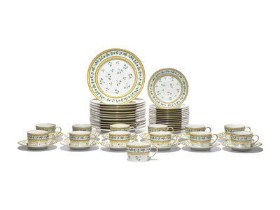 An A. Raynaud et Cie. Limoges Morning Glory Spray Parcel-Gilt Porcelain Dinner Service