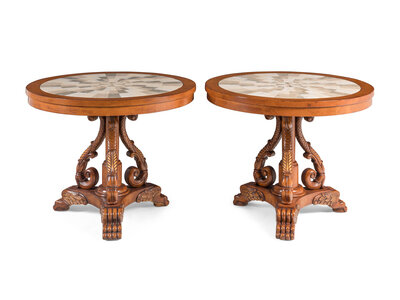A Pair of Regency Style Parcel-Gilt Pine and Stone-Top Side Tables