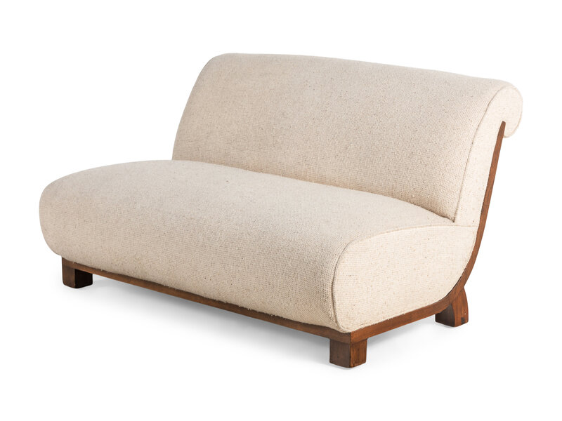 A Contemporary Upholstered Loveseat and Slipper Chair