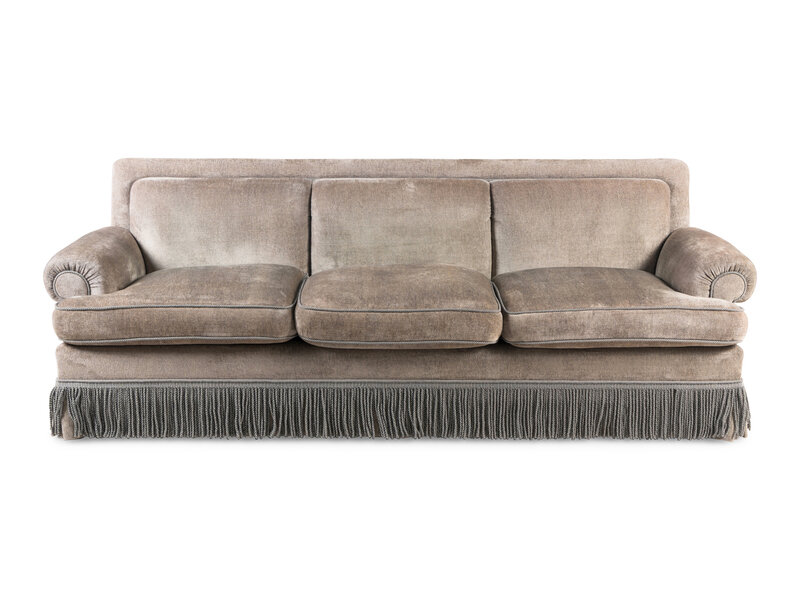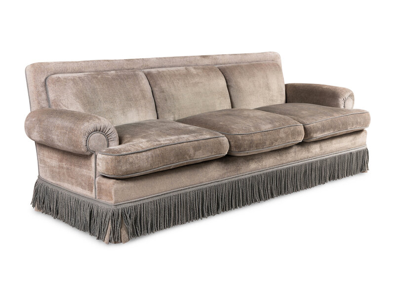 A Contemporary Three-Seat Sofa with Bullion Fringe