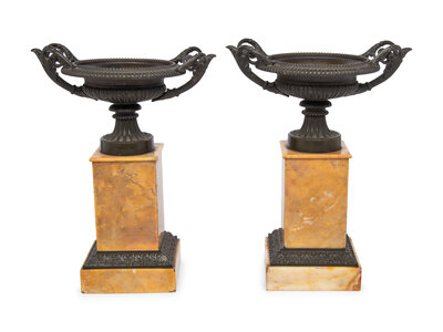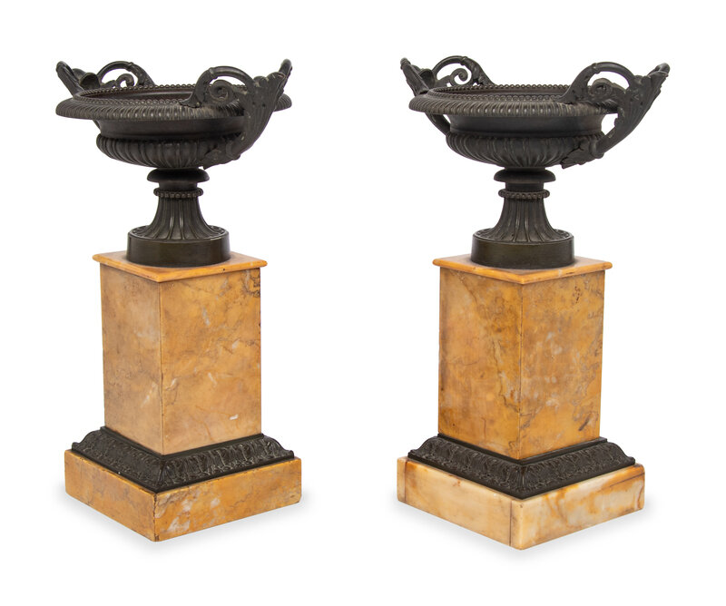 A Pair of Louis Phillipe Bronze and Sienna Marble Cassolettes