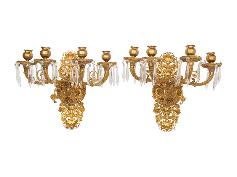 A Pair of Empire Style Gilt Bronze Four-Light Sconces