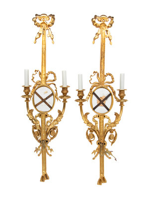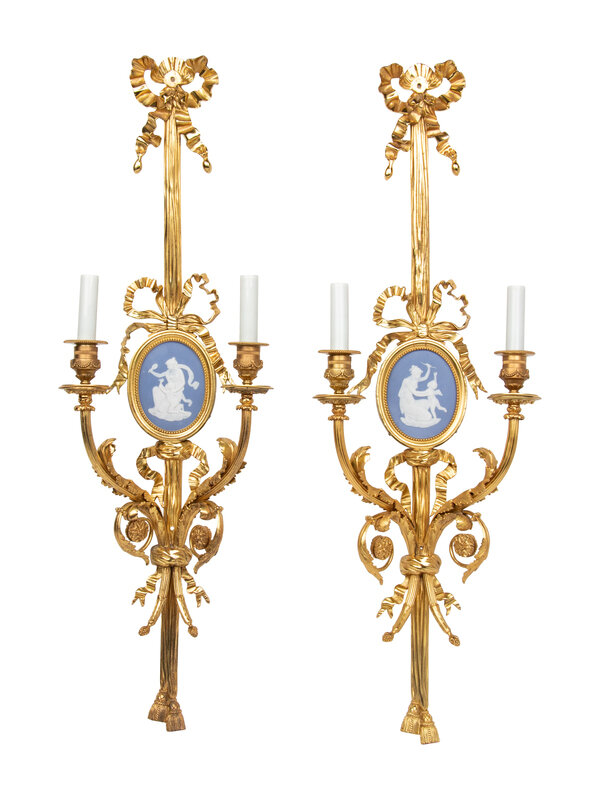 A Pair of Louis XVI Style Jasperware and Gilt Bronze Sconces