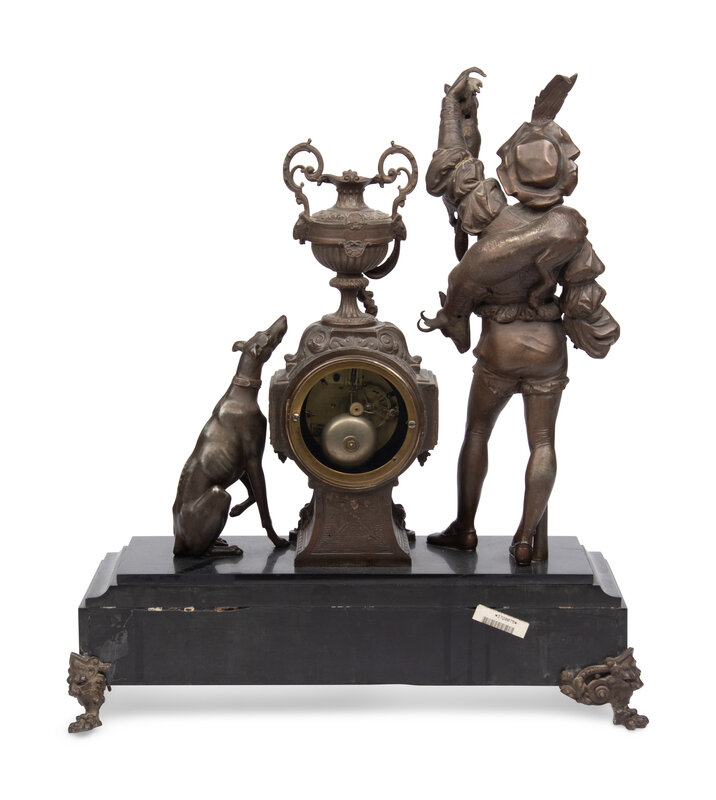 A Victorian Cast White Metal and Marble Mantel Clock