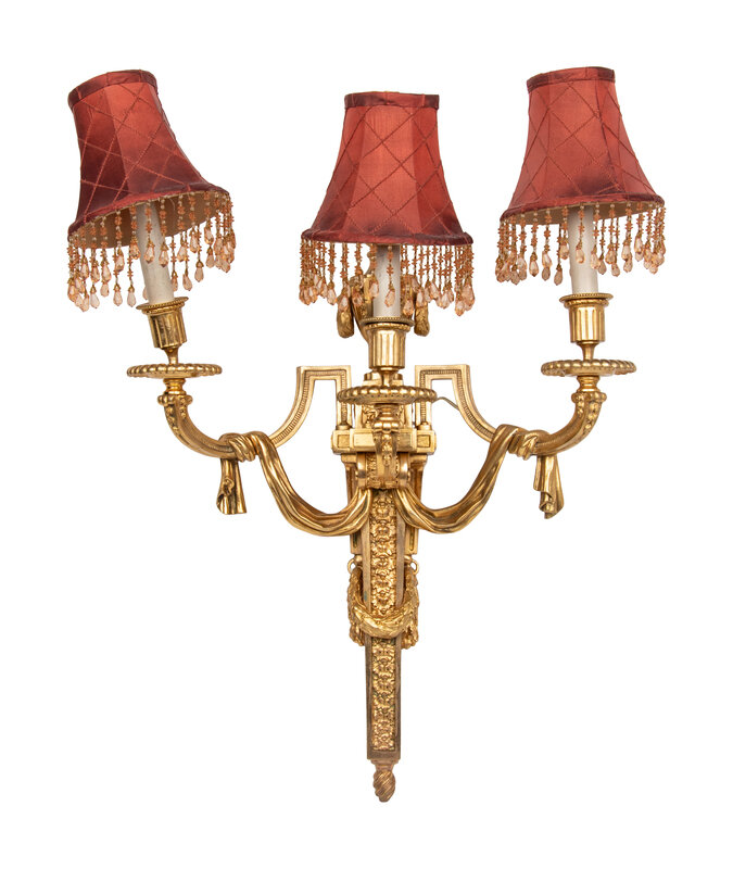 A Set of Four Louis XVI Style Gilt-Bronze Three-Light Sconces