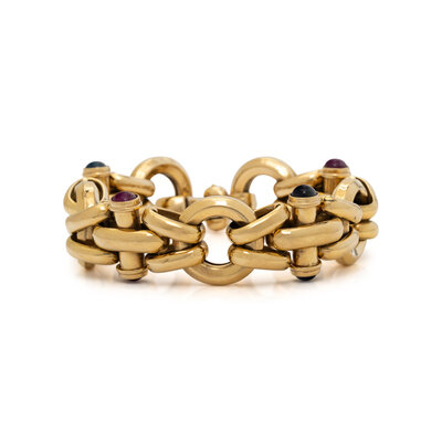 YELLOW GOLD, RUBY, AND SAPPHIRE BRACELET