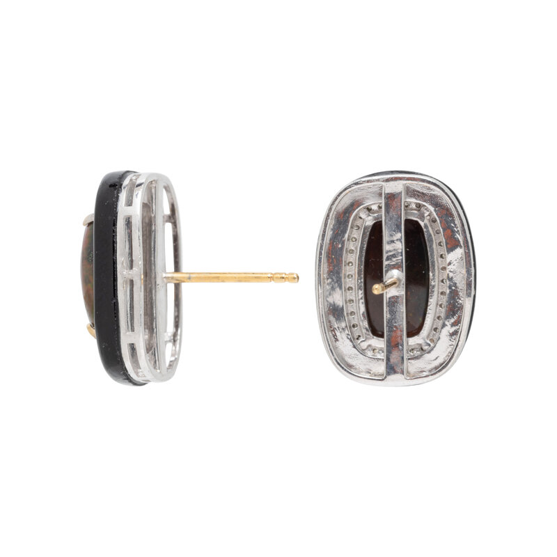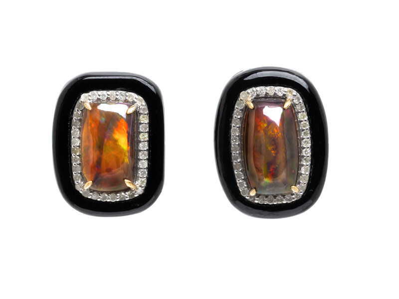 OPAL, BLACK ONYX, AND DIAMOND EARRINGS