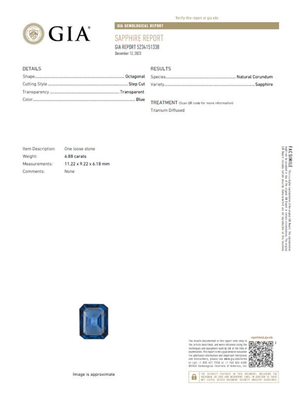 GIA, 2023, Report No. 5234151338, Natural Corundum, Sapphire, Titanium Diffused