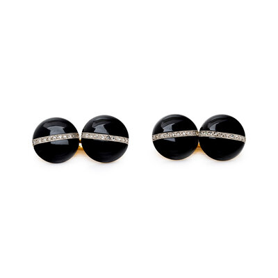 LACLOCHE FRÈRES, BLACK ONYX AND DIAMOND CUFFLINKS
