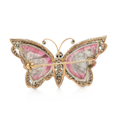 CARVED TOURMALINE BUTTERFLY BROOCH